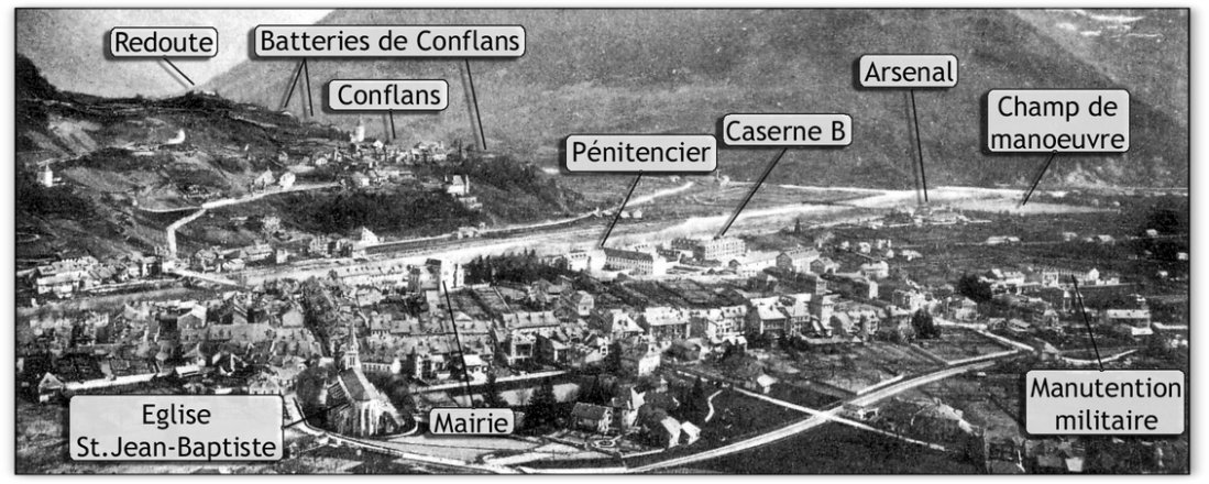 Albertville à la fin du XIXe siècle. |  Le rattachement de la Savoie à la France va accentuer le développement de la ville. Albertville devient une sous-préfecture de la Savoie et l'état français installe toute l'administration nécessaire à l'établissement de son autorité. C'est à cette même époque que le général Séré de Rivières reconfigure la défense des frontières alpines et créé à Albertville une Place de manoeuvre. Cela entraîne une augmentation très importante de la garnison en place et la construction de toute l'infrastructure pour satisfaire les besoins de cette troupe importante. |