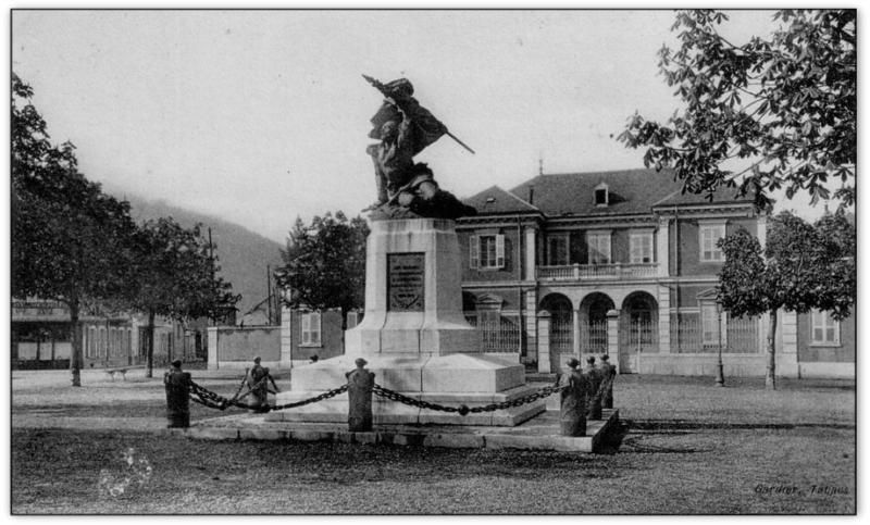 La sous-préfecture | | La sous-préfecture a été bâtie en 1860 dans le plus pur style Second Empire. Le monument élevé devant le bâtiment est dû au sculpteur albertvillois, Jean-Baptiste Weitmen (1867-1918). Il commémore les sacrifices consentis par les mobiles de Savoie pendant la guerre de 1870. Des canons sont rajoutés en 1904. |