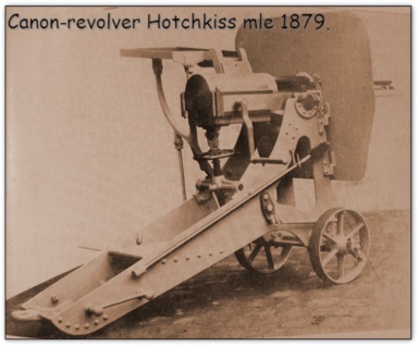 |  Artillerie de flanquement. | Rôle : Il s'agit d'empêcher que l'ennemi, soit par surprise ou par vive force, pénètre à l'intérieur du fort en traversant les fossés à l'aide d'échelles, de ponts, ou en jetant des fascines. Elle n'a pas besoin d'être mobile car elle est positionnée dans un abri (casemate, caponnière) et elle n'a pas besoin d'être puissante, car elle doit simplement briser échelles ou ponts sur une longueur de fossé et arrêter les vagues d'assauts de l'infanterie adverse. Matériels utilisés : Comme pour l'artillerie de place, il y a trois étapes dans l'armement. La première est faite dans l'urgence avec des canons à balles et des canons de 4 rayés rescapés de la guerre contre la Prusse. Puis avec l'arrivée du 95 mm de Lahitolle on récupéra un grand nombre de pièces de 7 qui équipa à peu de frais les casemates. Enfin suite aux différents appels d'offres, arriva le canon-revolver et le 12 culasse. | Armement assurant la protection rapprochée des forts.