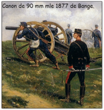 |  Artillerie de campagne. | Rôle : L'artillerie de campagne à pour mission d'appuyer l'infanterie lorsque que l'on a besoin d'une grande puissance de tir ou que la portée, des armes portatives, ne sont plus suffisantes. Pour remplir son rôle, le matériel de campagne doit être léger et puissant. Matériels utilisés : Période des expédients avec le canon de 4 et de 12 de campagne pour le rétablissement des batteries. Suit l'excellent canon de 7 du général de Reffye qui arrivent en nombre. Les troupes disposent enfin d'une artillerie équivalente à celle équipant la Prusse. Puis le colonel de Bange décline de nouveau son système, avec le canon de campagne de 90 mm. | Artillerie composant les batteries maçonnées et du moment.