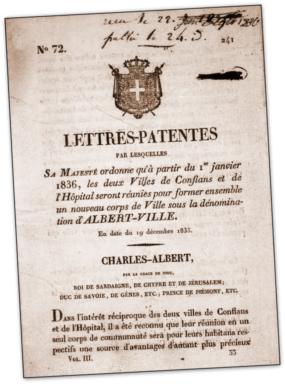 |  Annexion à la France en 1860. | | Avec l'annexion, Albertville se voit doter d'une sous-préfecture. Mais elle n'a pas attendu cela pour s'agrandir, elle possède un collège, une nouvelle mairie, un tribunal, une prison et plus tard une gare. |